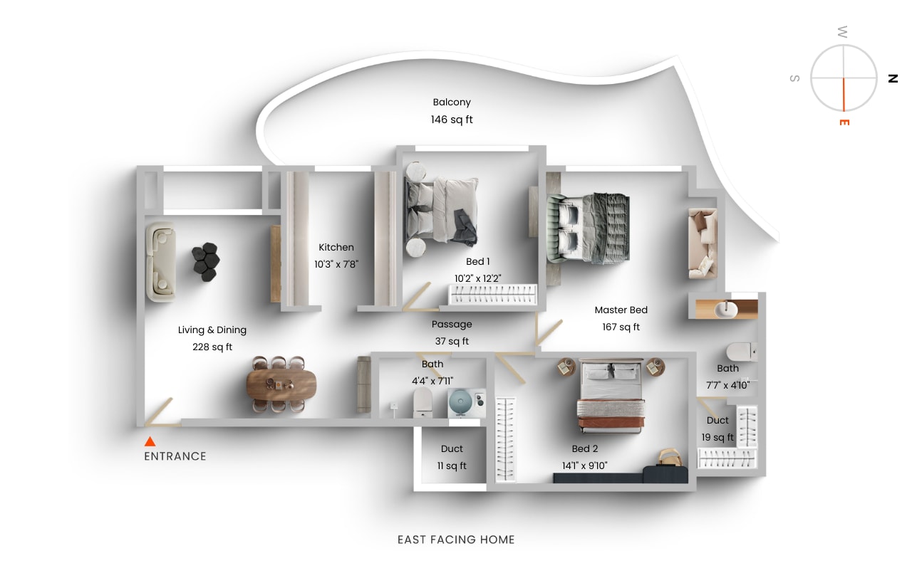 3 BHK in Arum-Allamanda, Nahar's Amrit Shakti